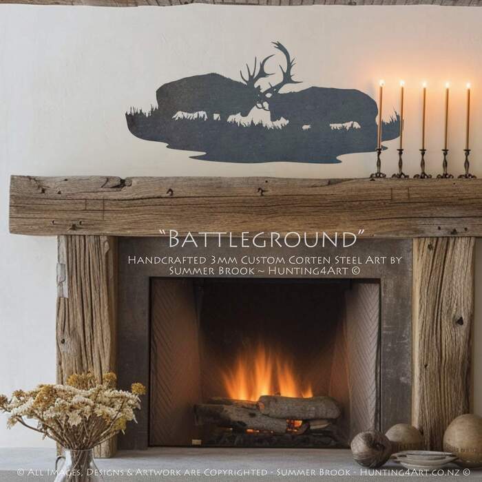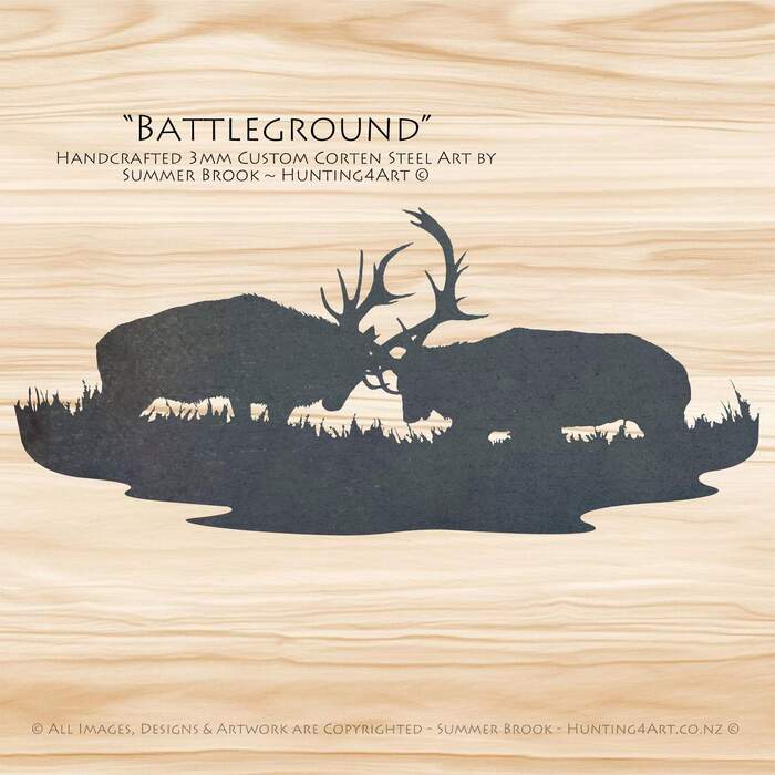 Rutting NZ red stags fight for supremacy during the roar! This customisable, high quality Corten metal art handcrafted by NZ artist Summer Brook is the perfect way to add a little 'extra something' to your own slice of paradise!