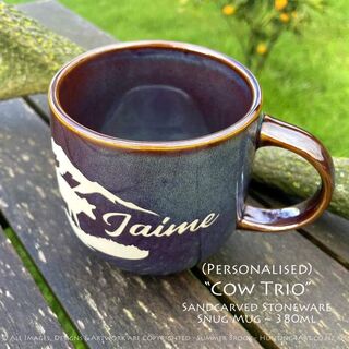 "Cow Trio" Limited Edition Sandcarved Stoneware Glazed Snug Mug