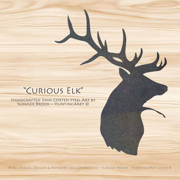 A magnificent wapiti bull elk looking into the distance. This high quality Corten metal art handcrafted by NZ artist Summer Brook is the perfect way to add a little 'extra something' to your own slice of paradise!