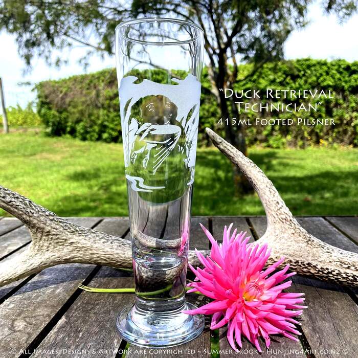 "Duck Retrieval Technician" Hand Sandcarved Glass Art