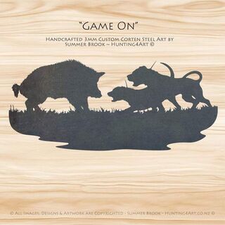 ★★★★★Game OnI was thrilled to stumble across the Hunting 4 Art website. I bought the 'Game On' steel art for my husband - it was the perfect gift! It was every bit as good as the pictures and my husband was absolutely stoked with it. The free postage is a bonus.
