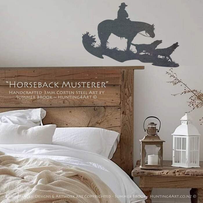 A good team of dogs and a tough horse make for easier work on the hills of NZ. This high quality Corten metal art handcrafted by NZ artist Summer Brook is the perfect way to add a little 'extra something' to your own slice of paradise!