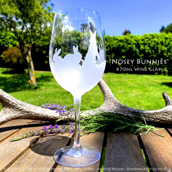 These cute little bunnies are sure to brighten your day! This beautifully handcrafted sandcarved glass art comes in a range of styles including wine glasses, beer mugs, whiskey decanters, tumblers and more!