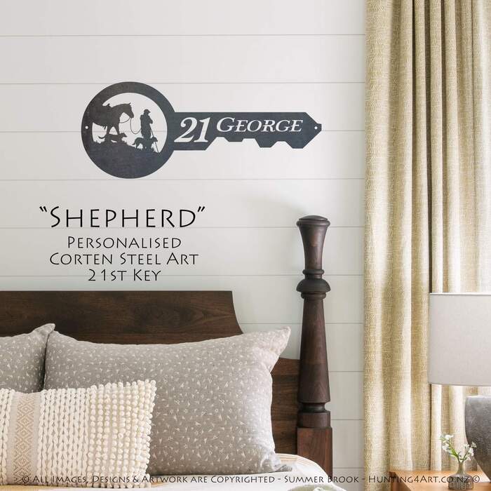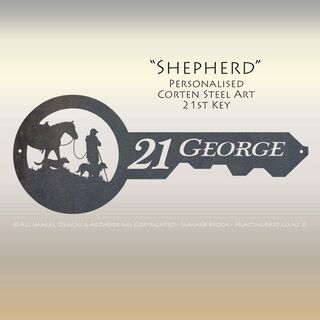 "Shepherd" Handcrafted Corten Steel Metal Art Personalised 21st Key