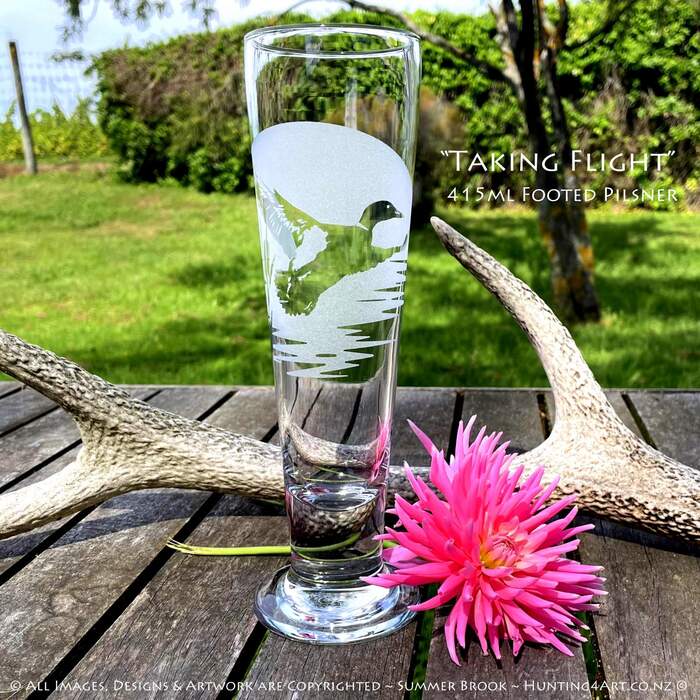 Hunting4Art's sandcarved glassware range is of the highest quality and engraved with Summer Brook's famous artworks! Each piece is sand carved with tiny grains of garnet and high pressure blasts of air which produce a nice, deep, textured etch that won't wash off, won't fade and won't wear like laser etched designs... these are made to last! Diligently handcrafted, a lot of time and care goes into making each one to create an absolute work of art we just know you will love!
