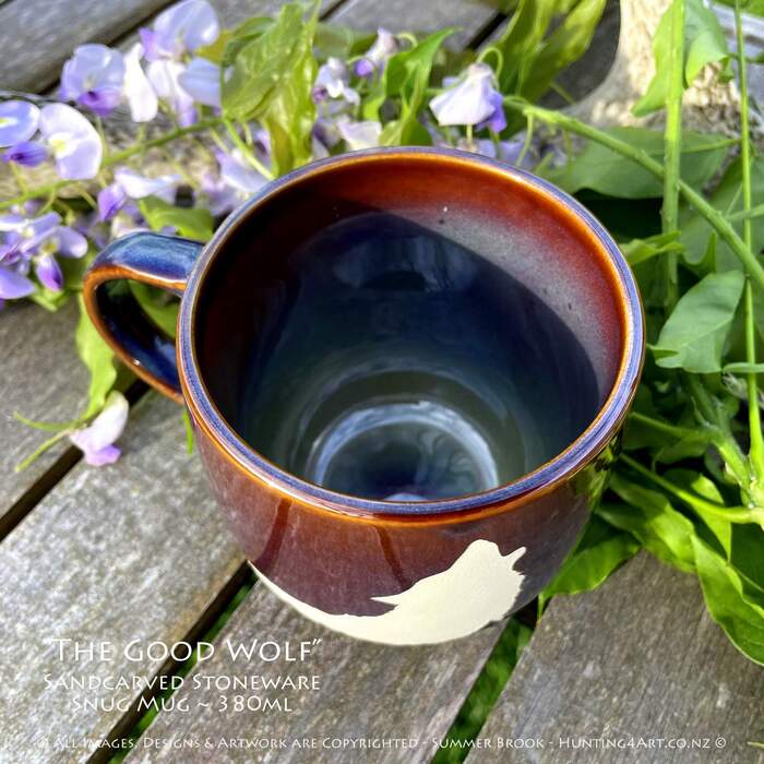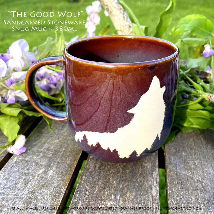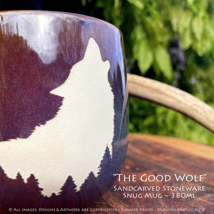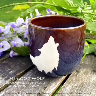 "The Good Wolf" Limited Edition Sandcarved Stoneware Glazed Snug Mug